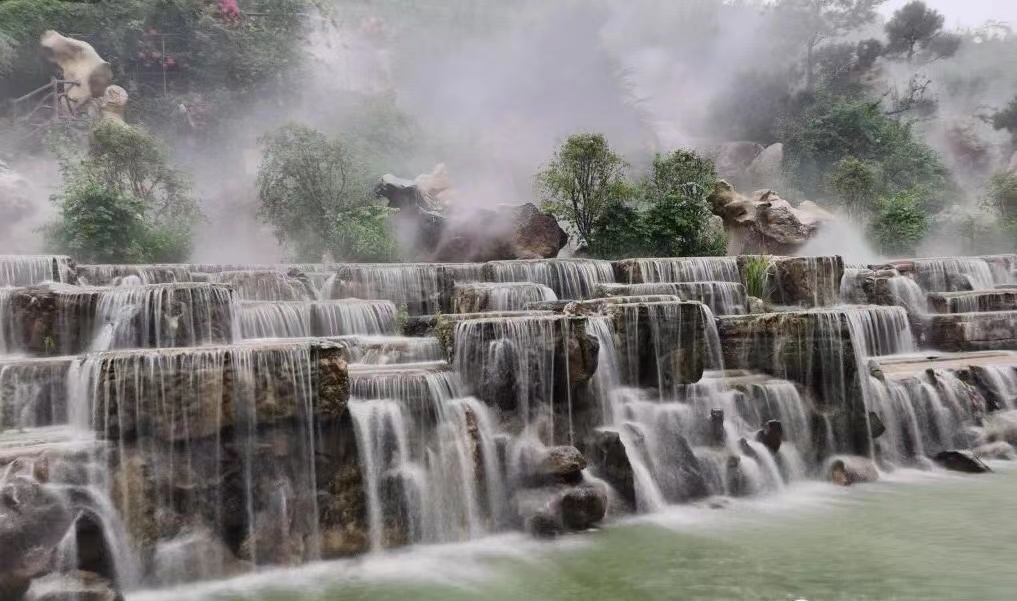 嶺南鳳凰園內(nèi),山下湖里荷花綻開,魚兒游蕩其中,湖中廊橋、曲橋、拱橋古樸大方,景區(qū)內(nèi)遍種名樹,奇花異草,綠樹成蔭,曲徑通幽,溶洞花巷,引人入勝,盡顯綠楊特色。伴隨著溫暖的陽光、清新怡人的空氣,一入園,大家或拍照留念,或熱鬧討論,一路風(fēng)光秀麗,令人心曠神怡。