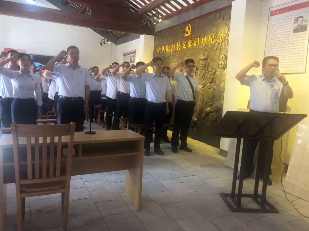 活動中,講解員結合嚴家祠陳列的歷史遺物及珍貴的史料娓娓道來嚴家祠背后的故事,與參加活動的黨員干部一起重溫革命歷程,回顧濱海新區(qū)大地革命的光榮歷史。隨后,黃遠維同志帶領聯(lián)誼單位的全體黨員干部面對鮮紅黨旗,鏗鏘有力,重溫入黨誓詞。