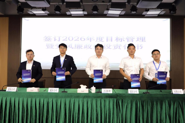 表態(tài)發(fā)言結(jié)束后,各部門、各子公司負(fù)責(zé)人依次簽訂《2026年度目標(biāo)管理暨黨風(fēng)廉政建設(shè)責(zé)任書》。這份沉甸甸的責(zé)任書,既是集團(tuán)下達(dá)的“任務(wù)書”,也是各負(fù)責(zé)人立下的“軍令狀”,更是向集團(tuán)作出的莊嚴(yán)承諾,凝聚著全體濱海人推動(dòng)高質(zhì)量發(fā)展的責(zé)任與擔(dān)當(dāng)。